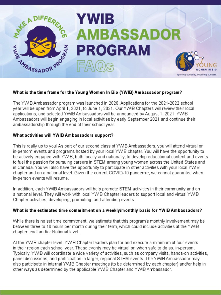 Ywibambassador Faqs Final 3 Pdf Science Technology Engineering And Mathematics Social Media